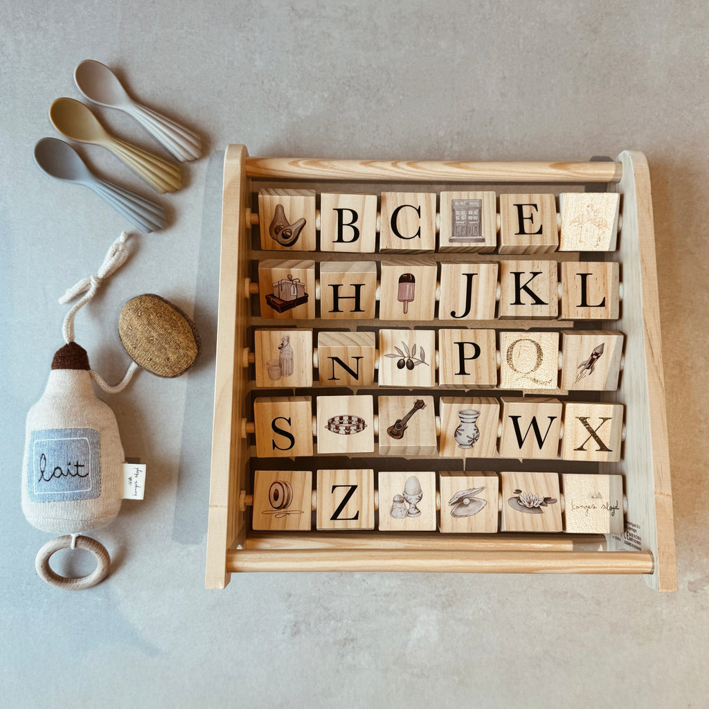 ✔️ Un abécédaire en bois illustré, idéal pour initier bébé aux lettres et aux images