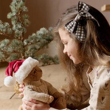 Douce et attachante avec son joli chandail en tricot et sa tuque de Noël, la peluche Georgie l'ourson deviendra rapidement le compagnon préféré de votre enfant pour le temps des fêtes!