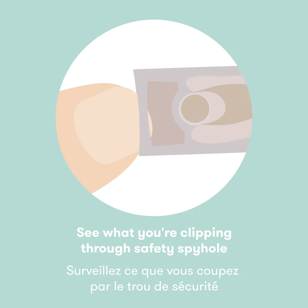 2. No more nicking baby's skin! Use safety spyhole so you can see what you're cutting for smooth, silent snipping