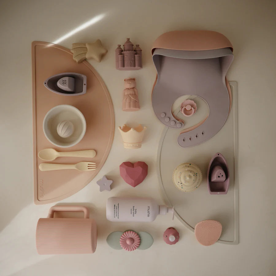 Our mold-free bath play sets bring a sense of wonder to every water adventure, from the bathtub to the pool or beach Made from 100% food grade silicone, the soft material is easy for little hands to hold while wet or dry. Its inventive design allows each toy to open into two separate pieces for thorough cleaning and fast drying. This feature allows the toys to remain mold-free with its easy-to-clean pieces that are dishwasher safe.