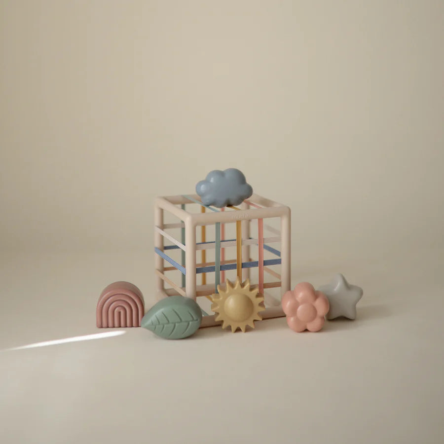 The Mushie Elastic Shape Sorter brings tactile play to life with calming, sophisticated colors. Little hands will love exploring nature-inspired shapes, stretching and fitting each piece into the soft, flexible openings. Perfect for developing fine motor skills, hand-eye coordination, and early problem-solving, this engaging toy also offers a soothing, tactile experience that encourages curiosity.